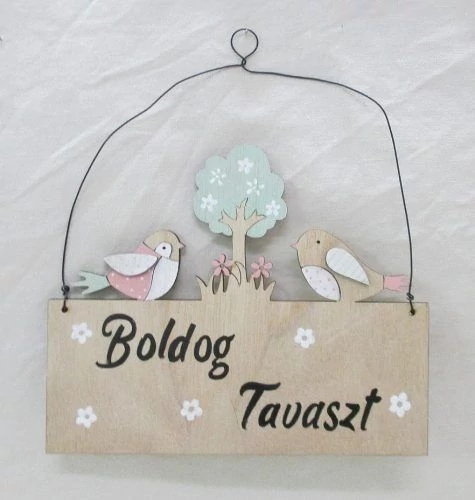 AJTÓDÍSZ fa színes tavaszi, madárkás, "Boldog Tavaszt!" felirattal