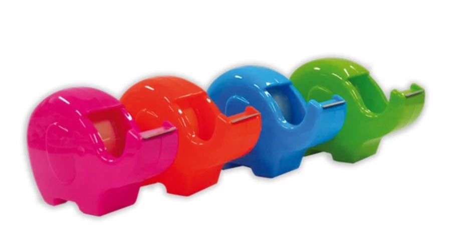 - Elefánt formájú celluxtépő 12mm-es és 19 mm-es ragasztószalagokhoz. 1 darab 19 mm x 33 m-es ragasztószalaggal töltve.