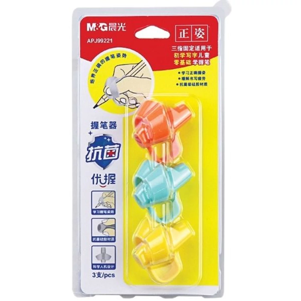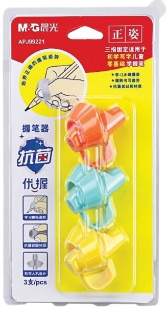 Színes ergonómikus ceruzafogó, amely hozzájárul a jobb ceruzafogáshoz és támogatja az ujjak helyes elhelyezését, a készlet 3 különböző színű darabot tartalmaz.