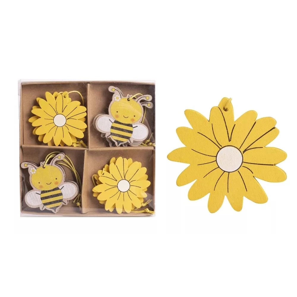 DEKOR fa tavaszi, méhecske, virág akasztható