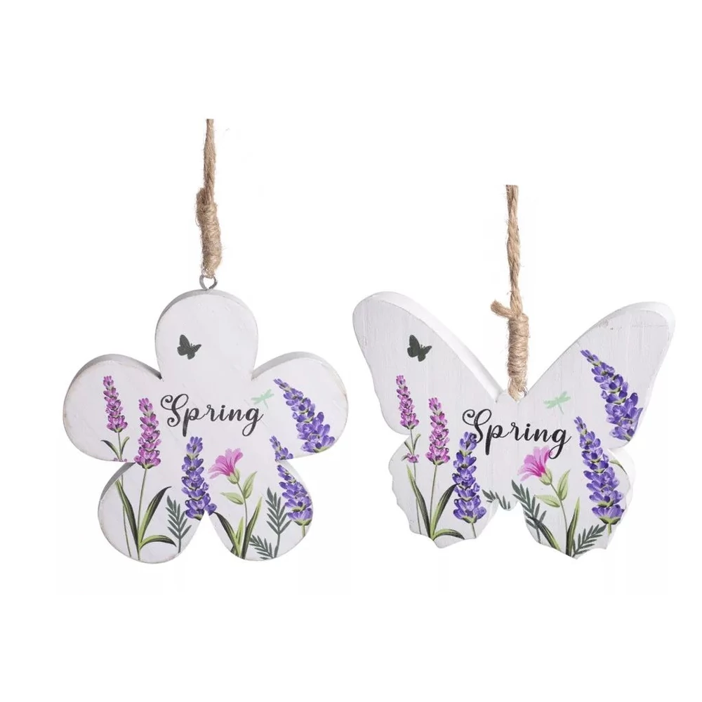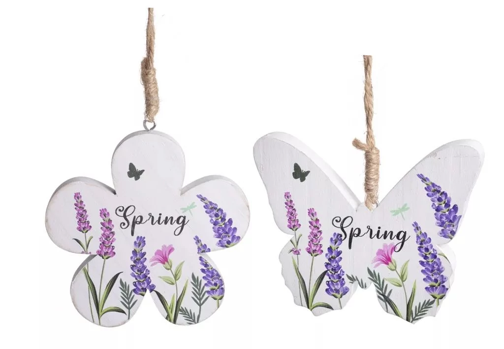 DEKOR fa tavaszi, virág, lepke levendula mintával, akasztható