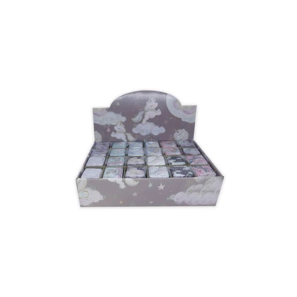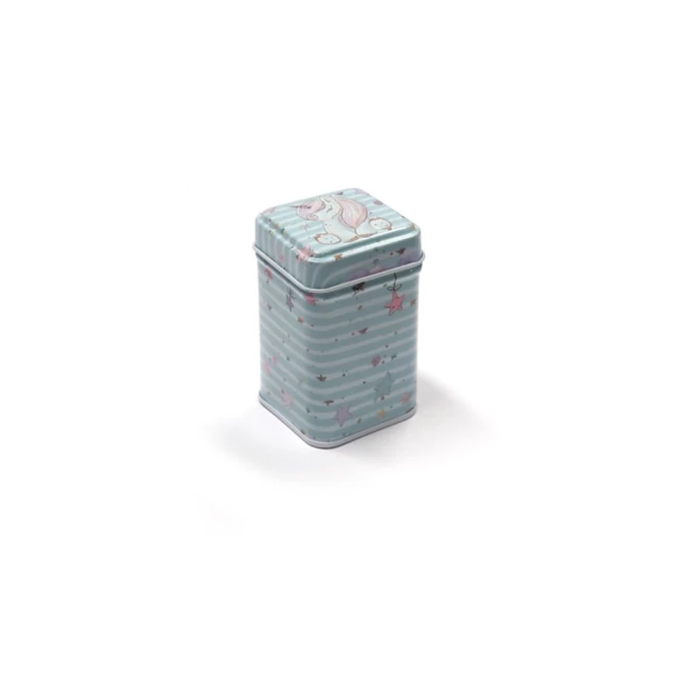 DÍSZDOBOZ fém husszúkás 4,4*4,4*7cm unikornis, fényes