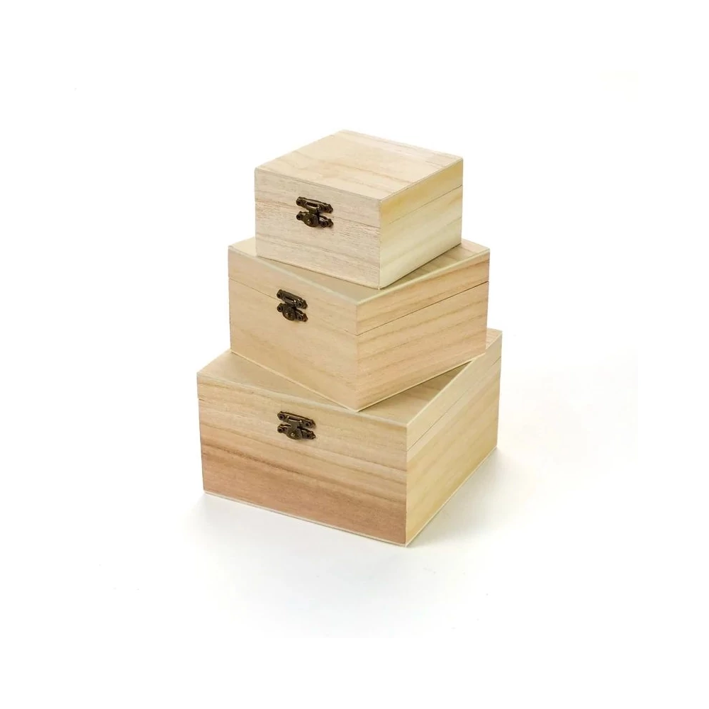 DOBOZ fa natur négyzet alakú, csatos 12*12*7,5cm 3/2