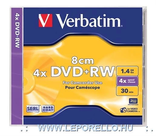 DVD+RW VERBATIM 8cm 1.4 GB 4x normál tokos
