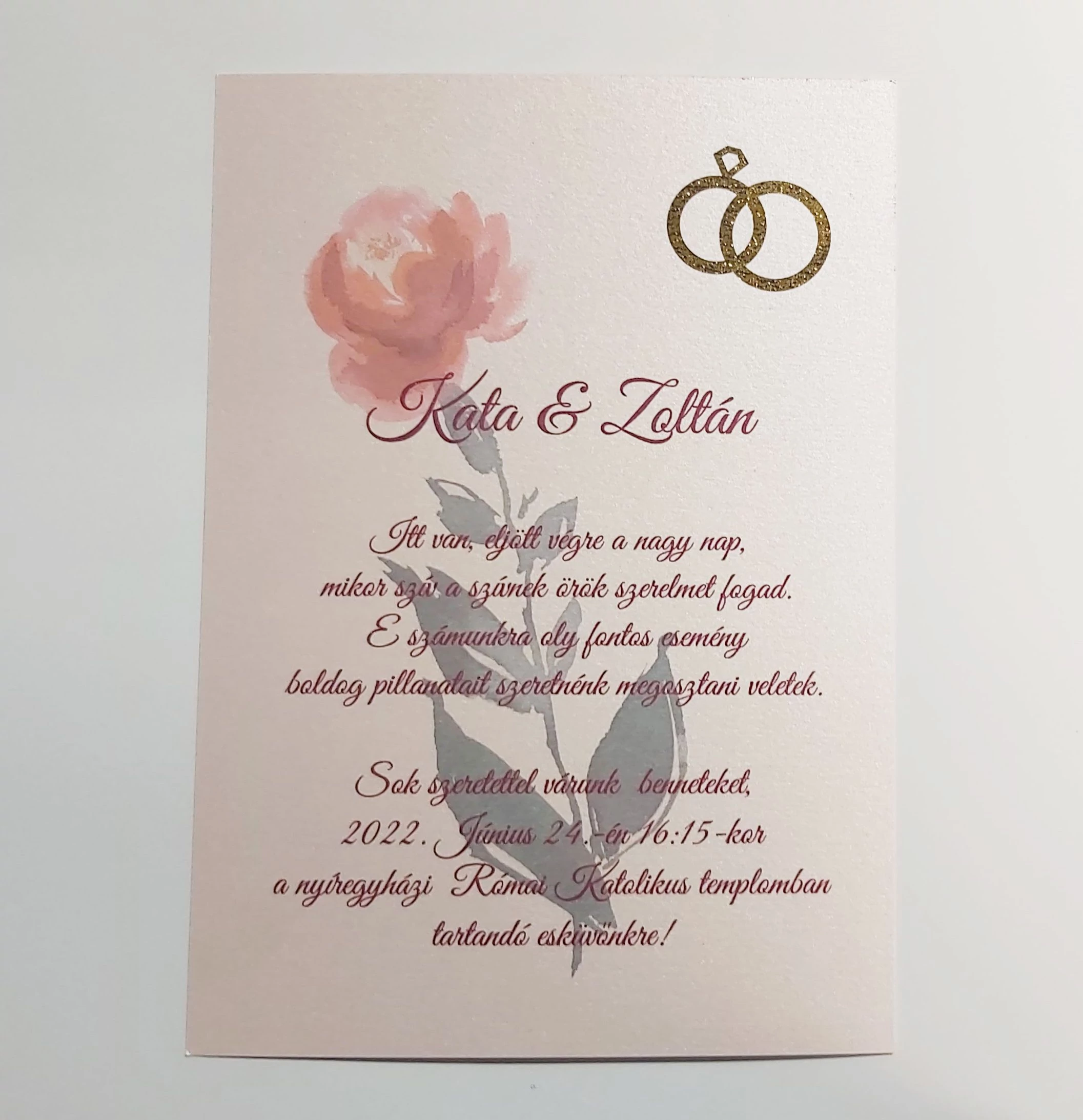 Egyedi tervezésű esküvői meghívó A4/2xA5 méretben. Kiegészítőnek külön rendelhető szalag és/vagy viaszpecsét a meghívókhoz.