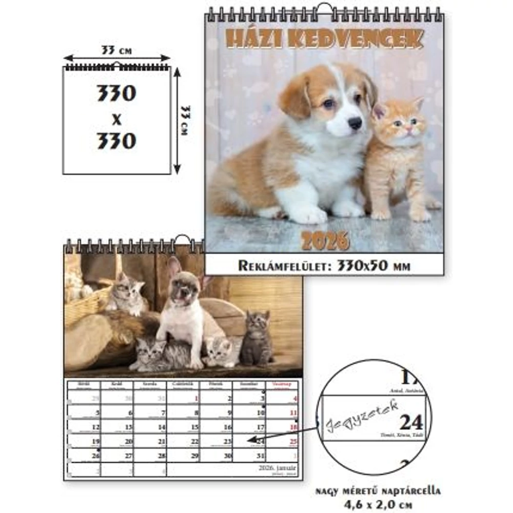 FALINAPTÁR 2026 Házi kedvencek T-Calendar 33*33 spirálozott
