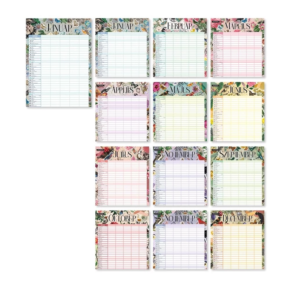 B4 méretű (álló formátum), spirálozott képes falinaptár, 12 hónap, ünnepekkel, névnapokkal, fém akasztóval, 235x330 mm