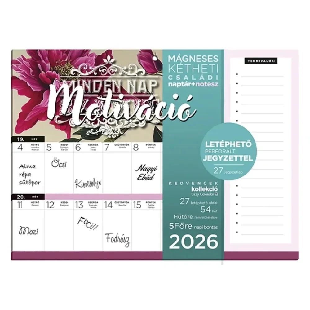 FALINAPTÁR 2026 tervező LIZZY Motiváció kétheti mágneses jegyzettömbbel