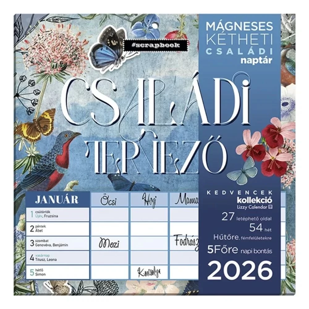 FALINAPTÁR 2026 tervező LIZZY Scrapbook Style Családi tervező kétheti mágneses