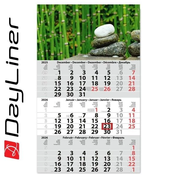 Primus speditőr naptár 1 tömbös 3 hónapos színes fejrész, szürke -piros színösszeállítás. A nap jelölő csúszka a termék része. Mérete: 30 x 48,5. Reklám felület mérete: 30 x 15 cm.