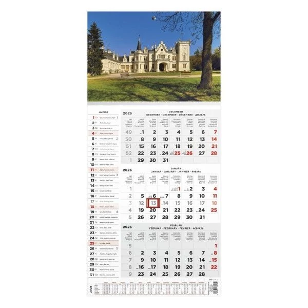FALINAPTÁR SPEDITŐR 2026 1 tömbös 3 havi T077-00. névnapos 29*62,8 (kastély, 282930001)