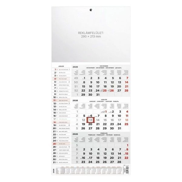 - 1 tömbből álló 3 havi speditőr falinaptár.
