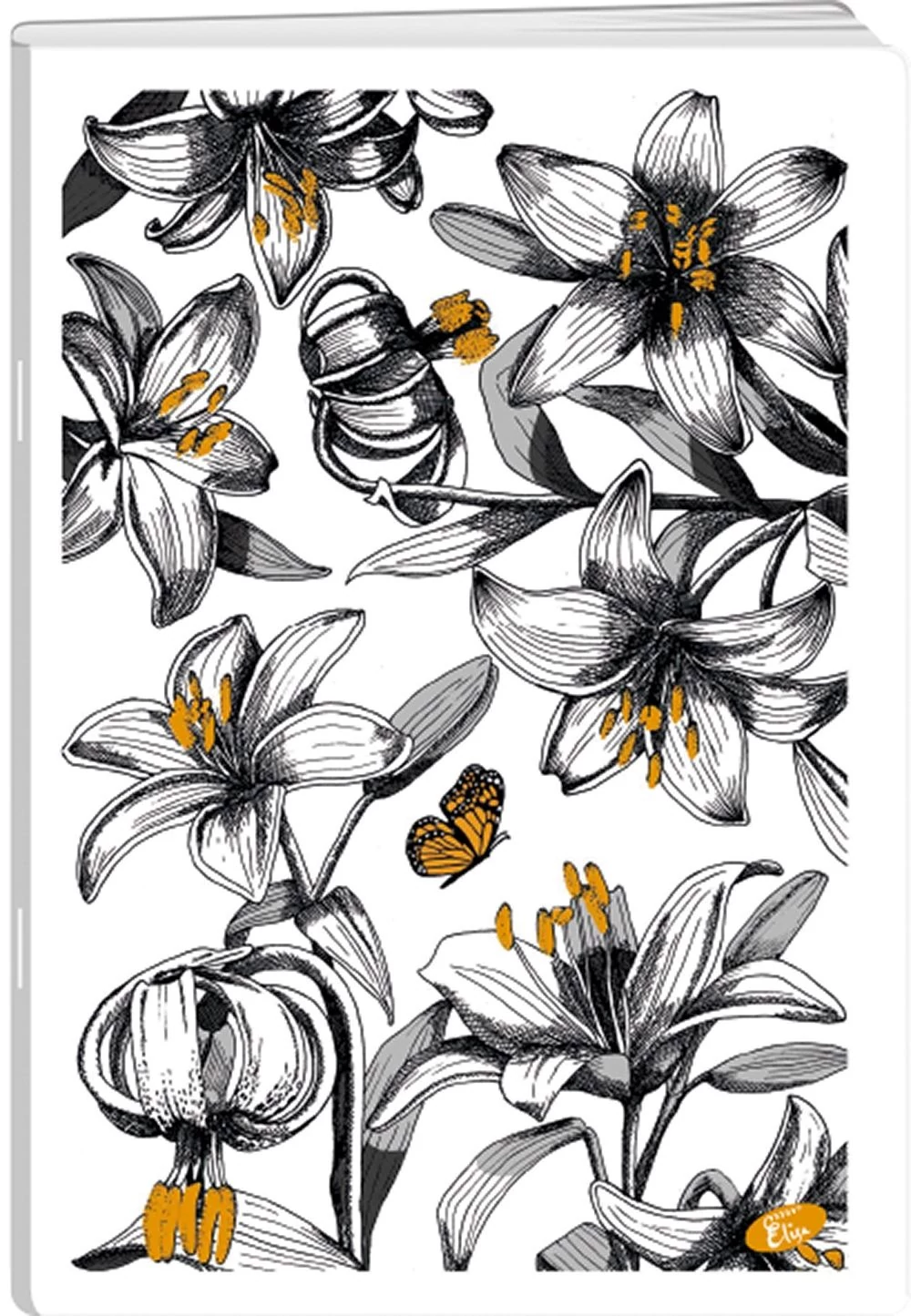 Minőségi füzetek kollekciója virágrajzokkal a borítón. A matt borítón lévő arany csillámok tetszetős effektust eredményeznek. 6 vegyes motívum.