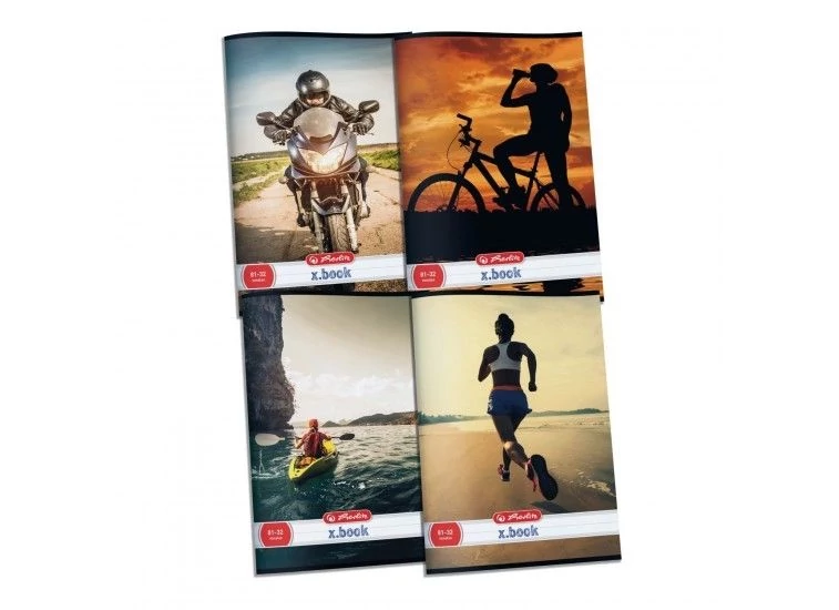 A4-es méretű, 32 lapos, vonalas iskolai füzet Sport, mintás fedlappal, hófehér belívvel. Az x.book termékcsalád része, 4 mintával. Minta a készlet erejéig választható.