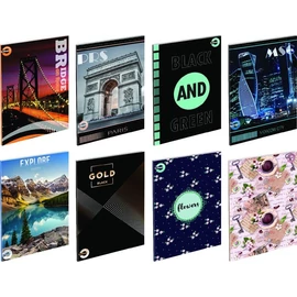 - 40 lapos, tűzött füzet. 70 g-os hófehér belív. 300 g-os műnyomó borító. UV lakkos, illetve metál felületkezelés.