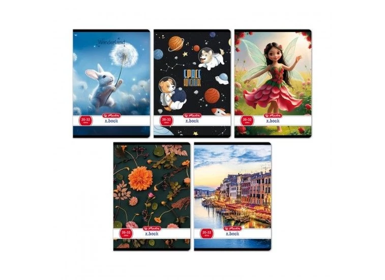 - A5-ös méretű, 32 lapos sima iskolai füzet mintás fedlappal, hófehér belívvel, margóval ellátott. 5 mintával. Minta a készlet erejéig választható.