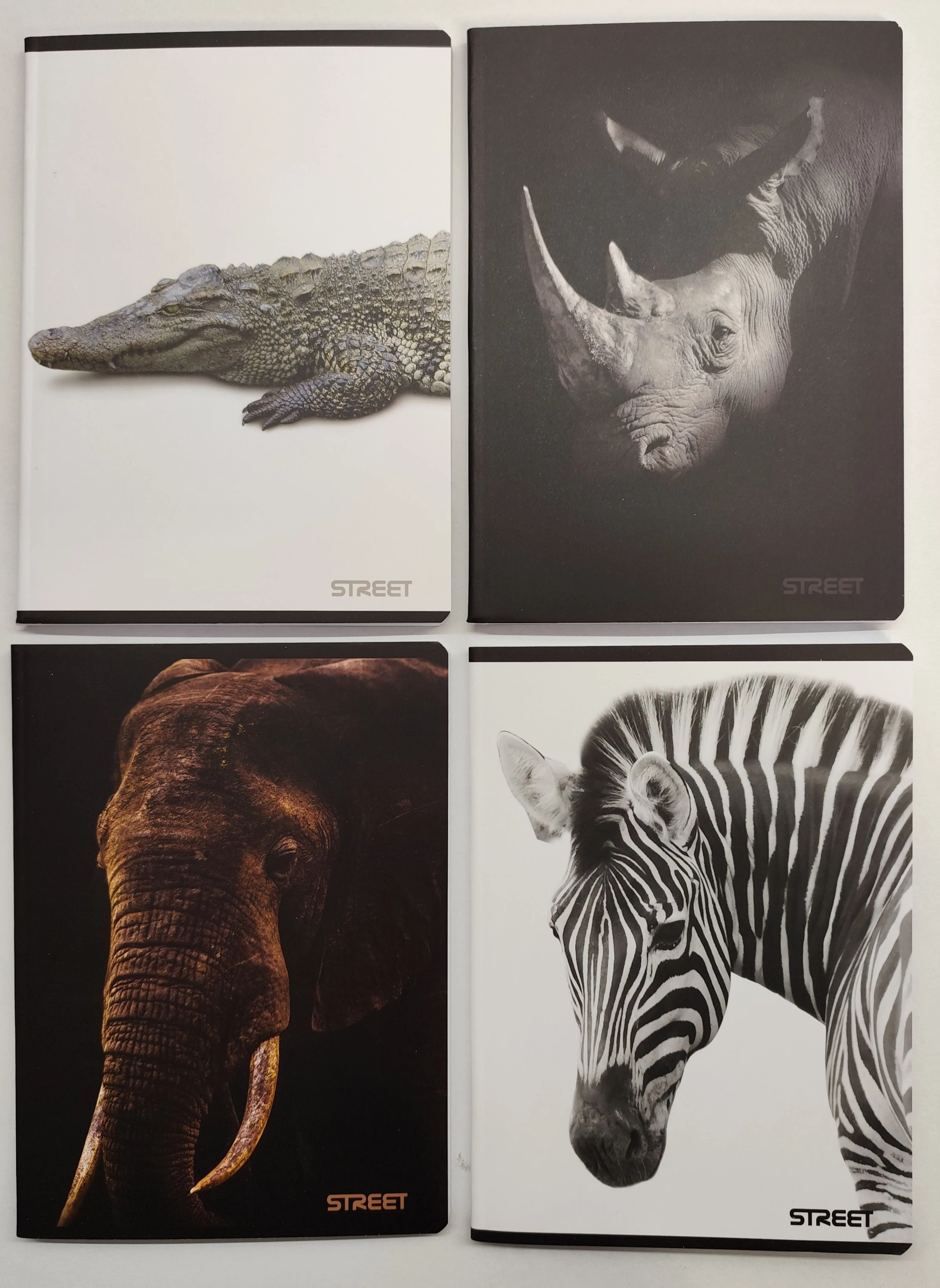 Karton borítású Safari állatmintás füzet A/5 54 lapos kockás füzet, vegyes mintákkal, minta a készlet erejéig választható.