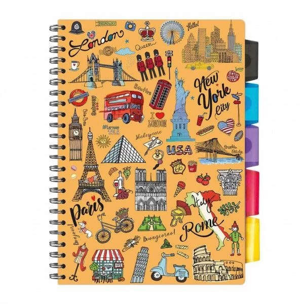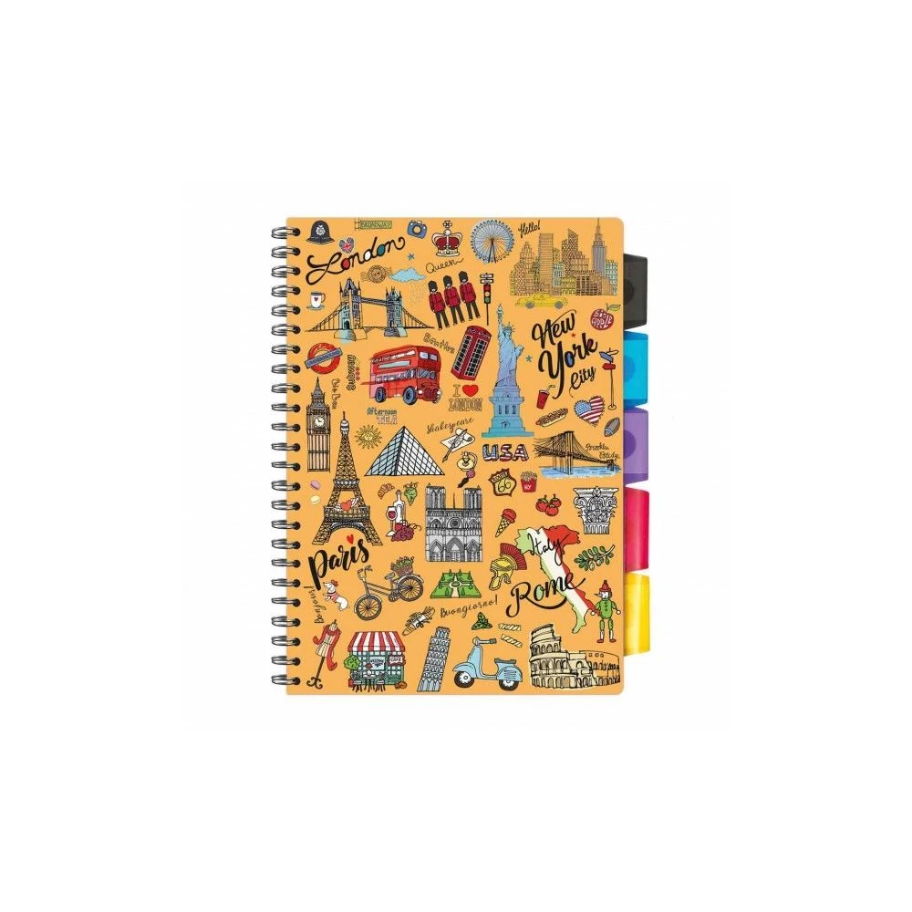 FÜZET spirál A4 ARGUS vonalas 80lap színregiszteres PP fed. perforált (Cities, 153810789)