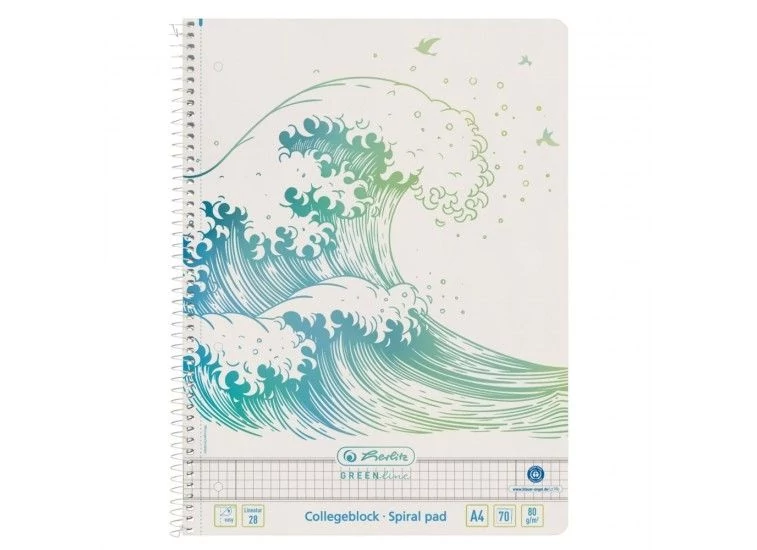 FÜZET spirál A4 HERLITZ kockás 70l Green Hullám