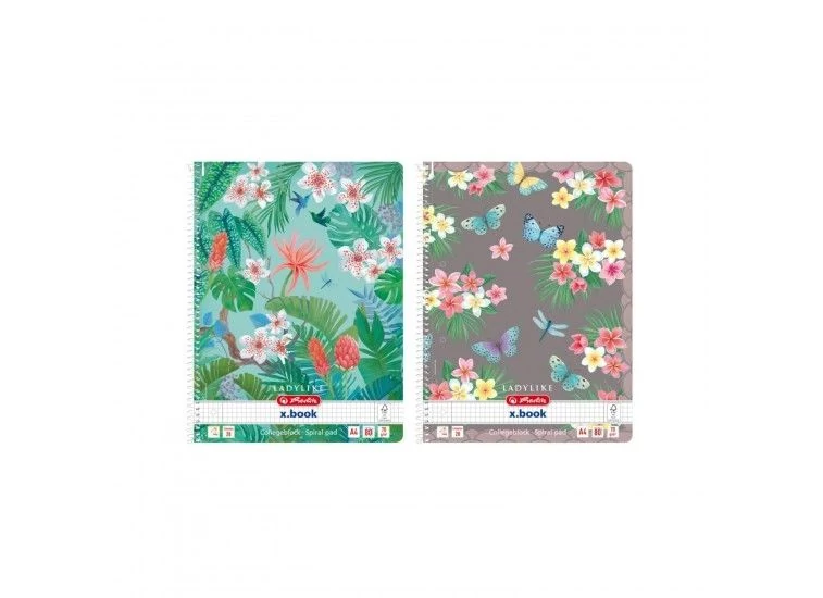 A4-es méretű 80 lapos Ladylike spirálfüzet, kockás kivitelben, 70g/m2-es famentes belívvel, margóval, lyukasztott, perforált lapokkal, 2 minta vegyesen. Minta a készlet erejéig választható.