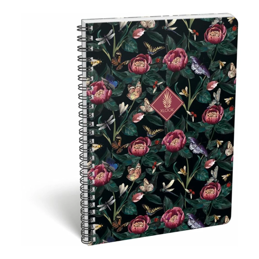 FÜZET spirál A4 LIZZY vonalas 80l XRCise Look (Twelve, fekete virágos, 23060320)