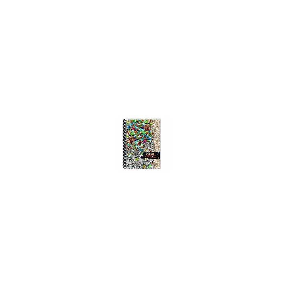 - Spirálfüzet, dupla spirálos, 80 lapos, lyukasztott, vonalas különféle mintával
