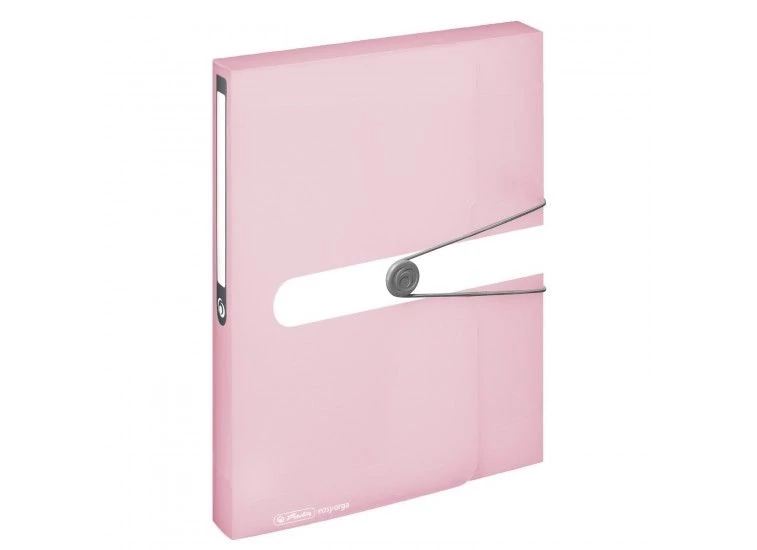 A4-es méretű áttetsző színű gumis füzetbox PP alapanyagból, feliratozható 4 cm-es gerincvastagsággal, az easy.orga to go termékcsalád tagja. Pasztell rózsaszín kivitelben.