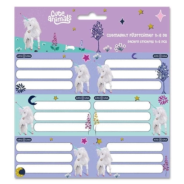 FÜZETCIMKE ARS UNA 3X6db=18db-os vegyes (Cute Animals-Unicorn, 15.18966)