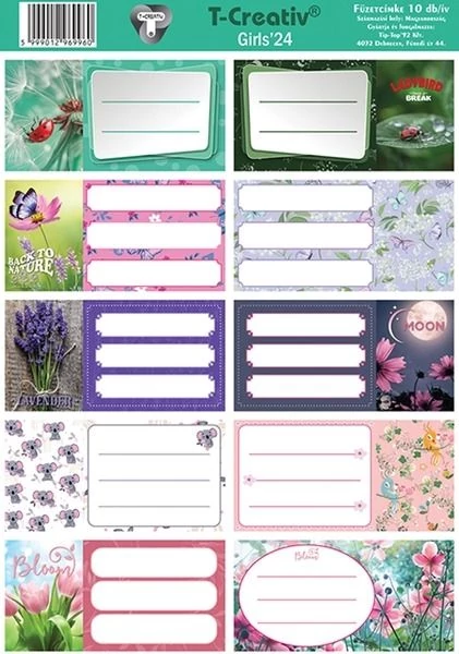 FÜZETCIMKE T-Creativ mintás 10db /1iv (Girls'24, N13045TGI)