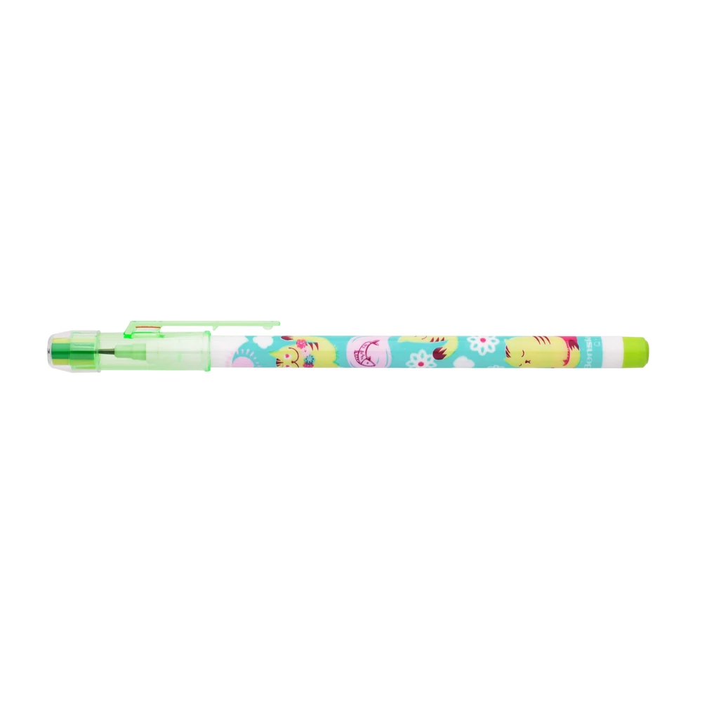 Cica motívummal díszített tolóbetétes ceruza, radírral.