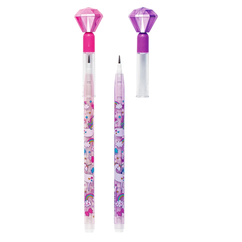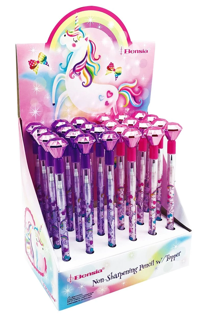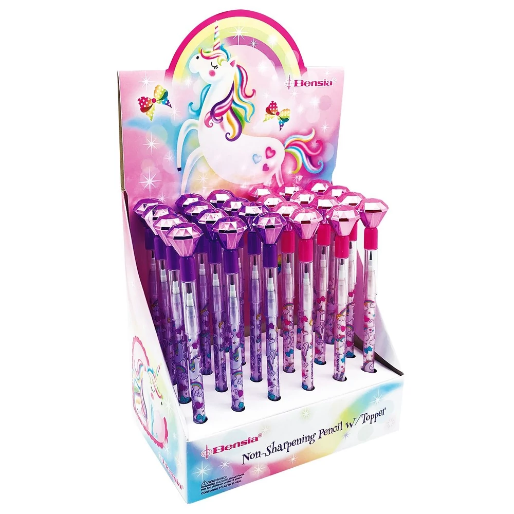 Tolóbetétes grafitceruza unikornis motívummal, ékköves kupakdísszel.