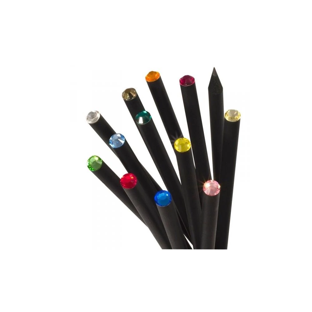 Grafit ceruza fekete testű, a végén strassz kővel.