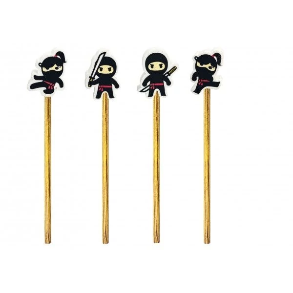 Grafit ceruza HB keménységgel, ninja formájú radírral a végén, négy különféle mintával.