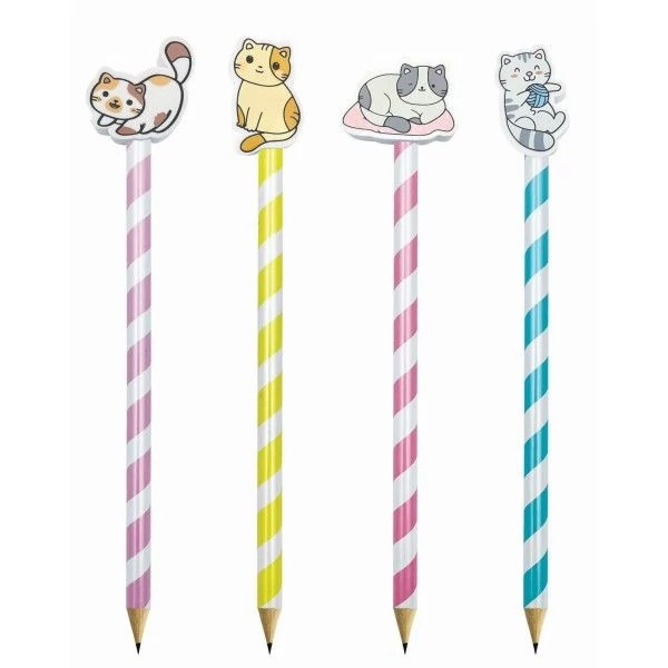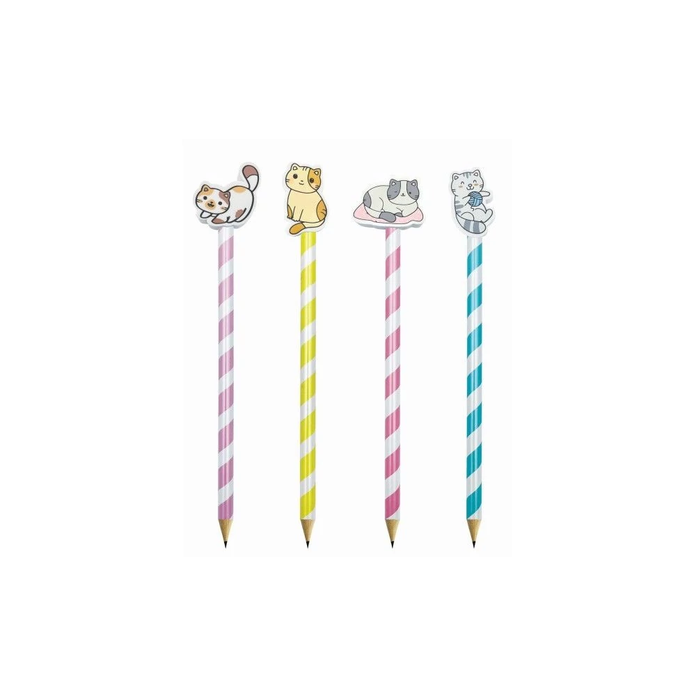 Grafit ceruza HB keménységgel, cica formájú radírral a végén, négy különféle mintával