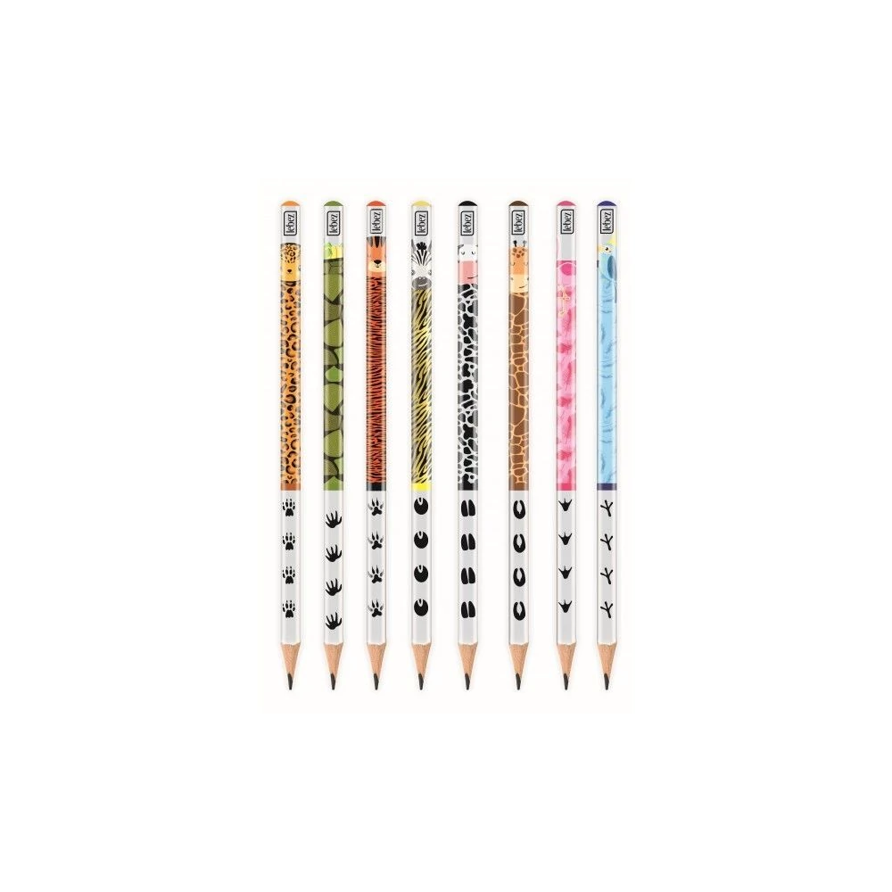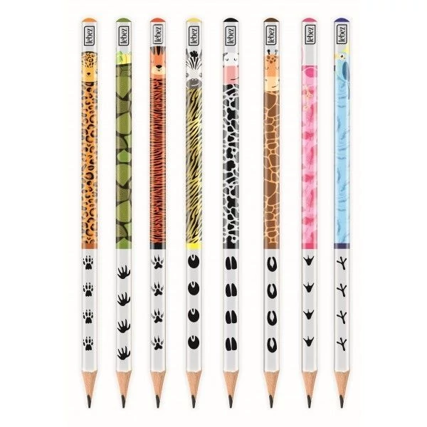 Grafitceruza, háromszög alakú, HB, 8 mm átmérővel, 2,2 mm bélvastagsággal. 8 különféle állatmintával.