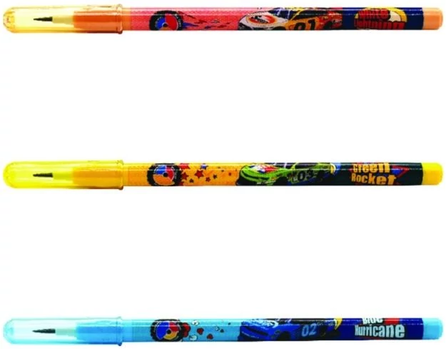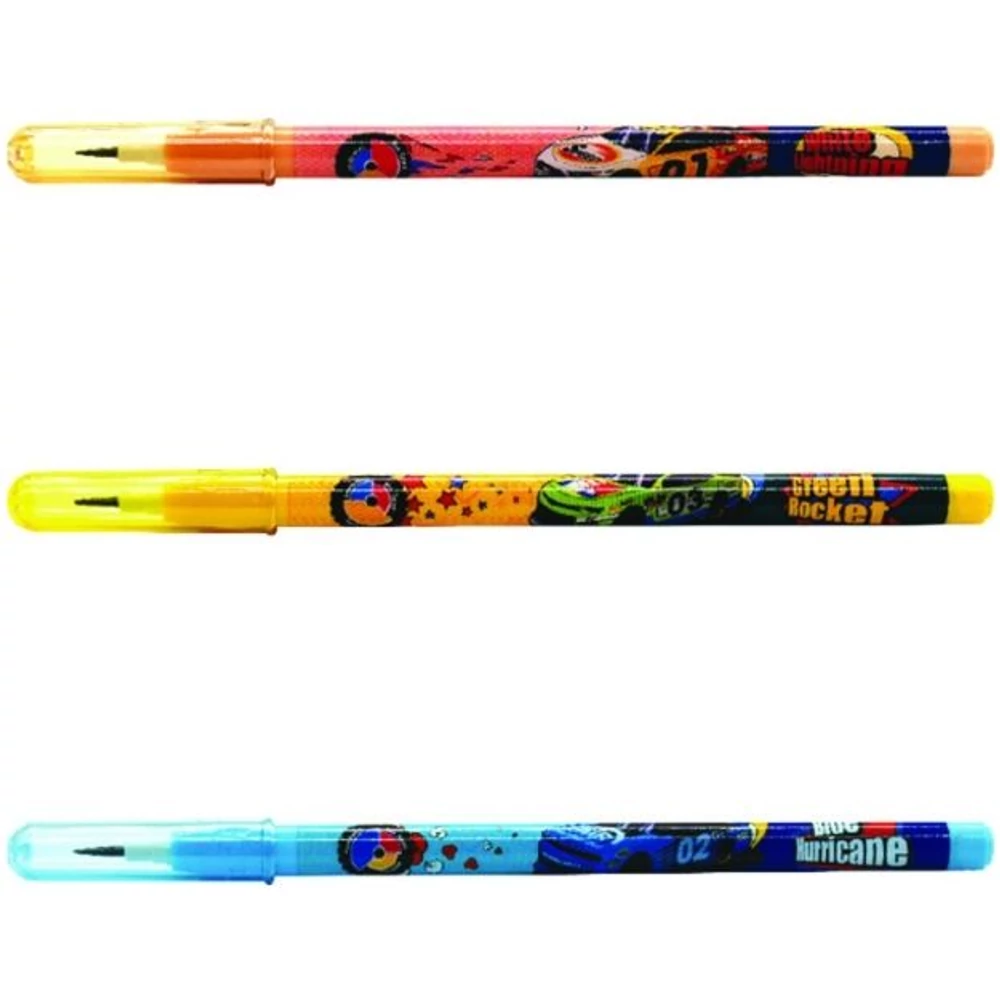 Műanyag ceruzatest versenyautós mintákkal, folyamatosan adagolható ceruzabetét.