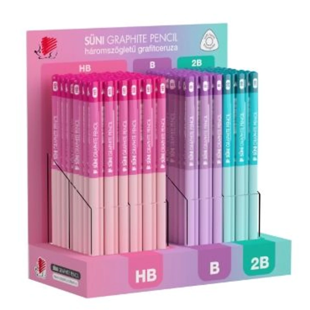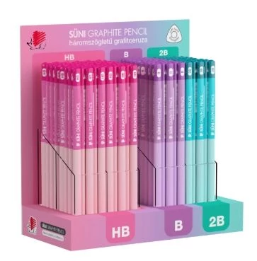 Háromszögletű grafitceruza, HB,B,2B keménység, világos pasztell színű ceruzatest.
