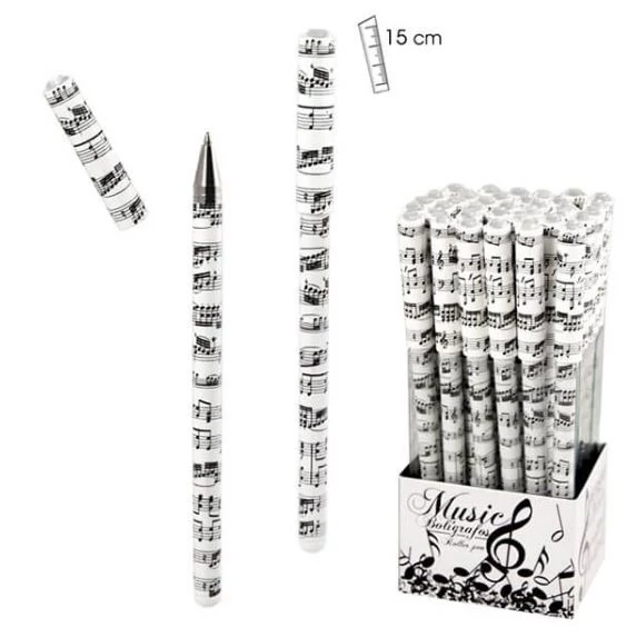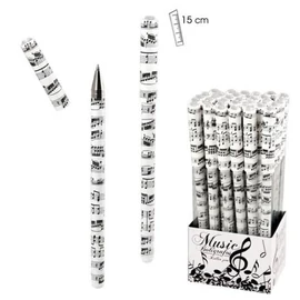 Hangjegyes mintájú golyóstoll levehető kupakkal, melynek a vége színtelen Swarovski kővel van díszítve. Hossza 15 cm. Remek ajándék zenekedvelőknek, zenetanároknak.