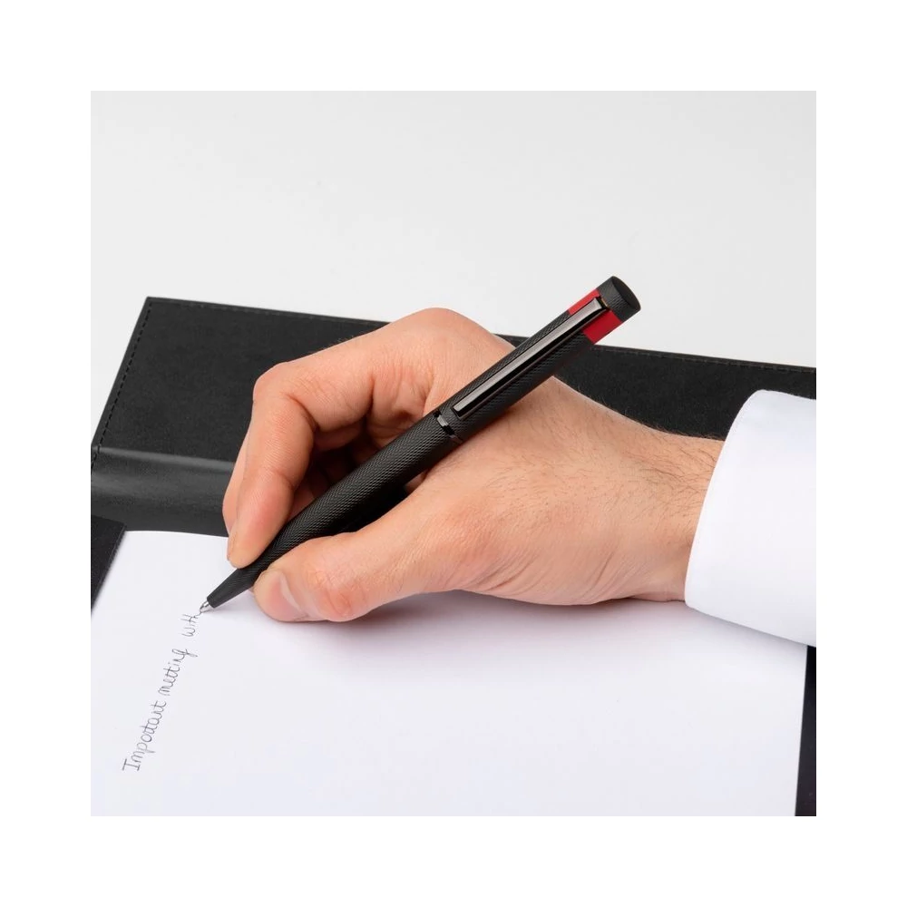 A hurkos íróeszköz sziluettje határozottan aktív és modern dizájnelemekkel rendelkezik, amelyek optimális írási élményt nyújtanak. Ez a legújabb verzió matt gyémántmintázatot kínál lágy tapintású nyomtatott aláírással a grafikus és modern tapintásért. Díszdobozban szállítjuk.
