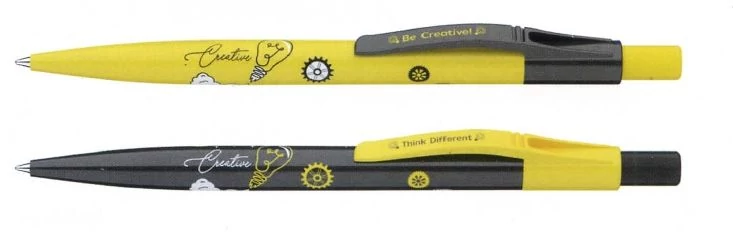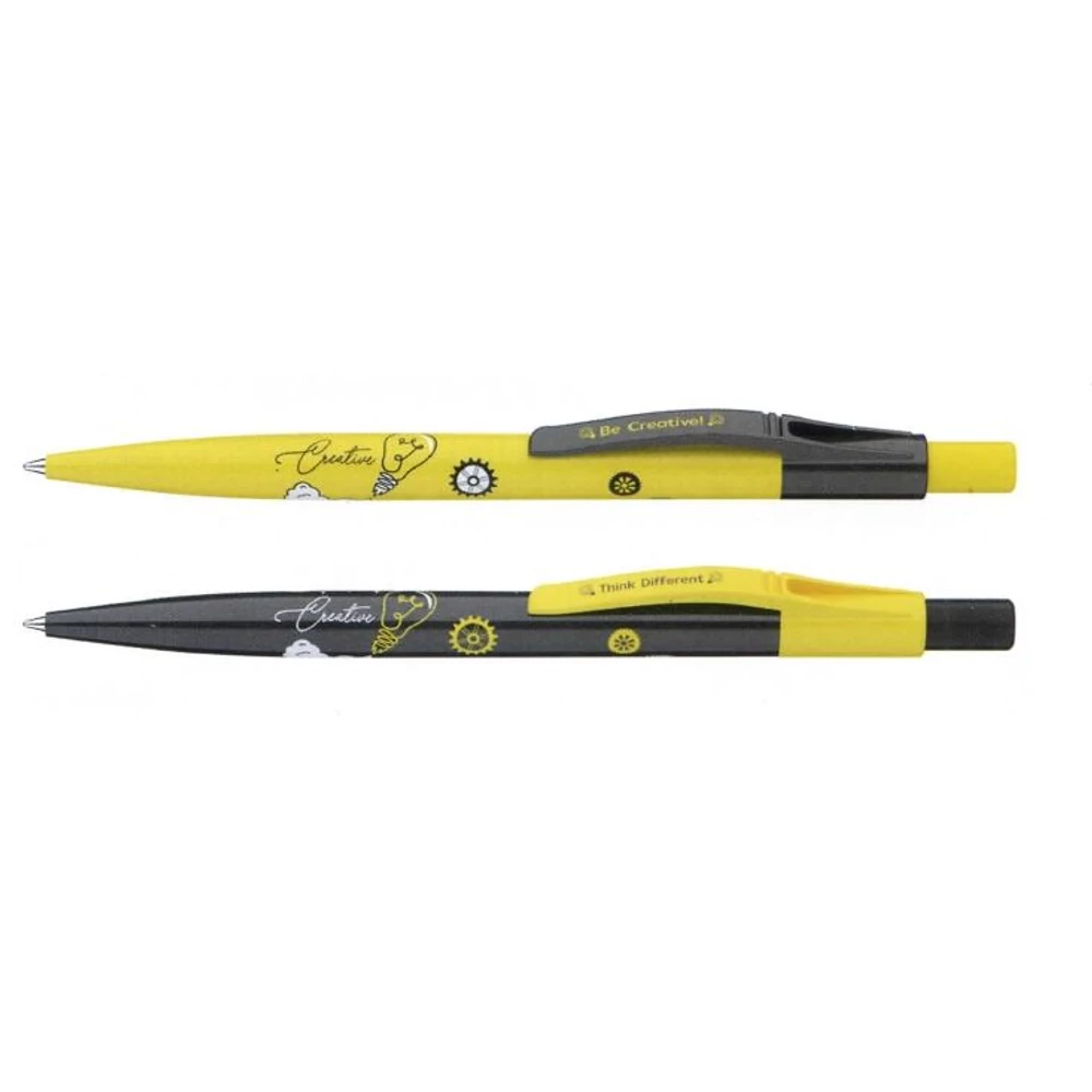 - Kreatív motívumokkal díszített nyomógombos mechanikával működő golyóstoll 0,8 mm-es kék színű golyósbetéttel.