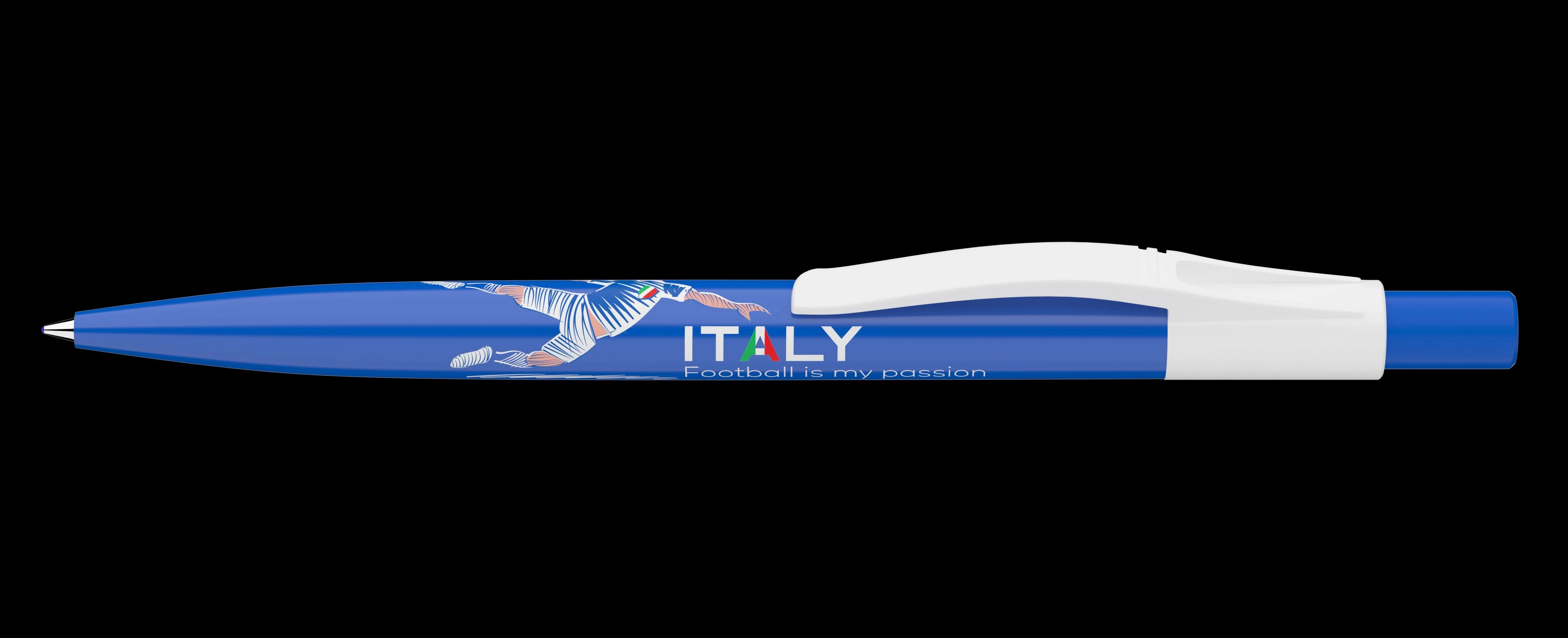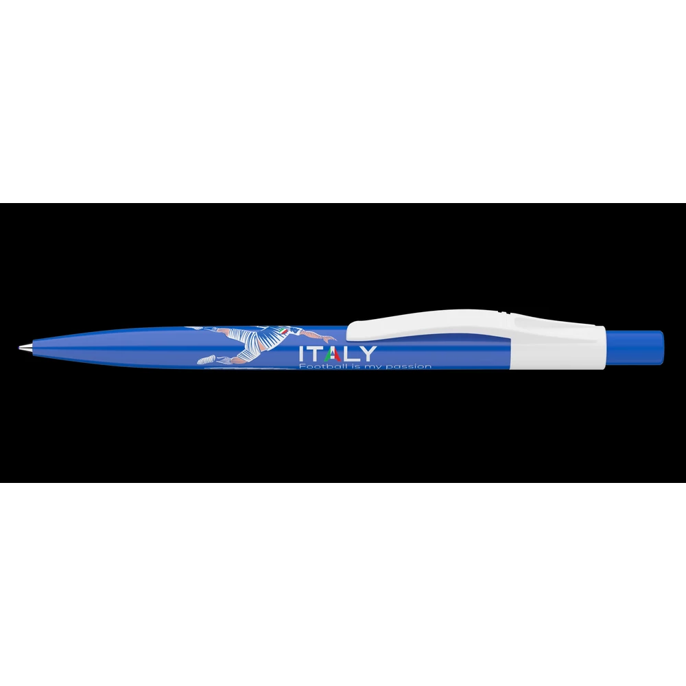Minták: 9010173006-France, 9010173001-Germany, 9010173005-Hungary, 9010173000-Italy, 9010173002-Portugal, 9010173003-Spain- Futballnemzetek zászlójával mintázott nyomógombos mechanikával működő golyóstoll.- Cserélhető X-20 betét,- vonalvastagság: 0,8mm.- Íráshossz: 2500m Írószín: kék.