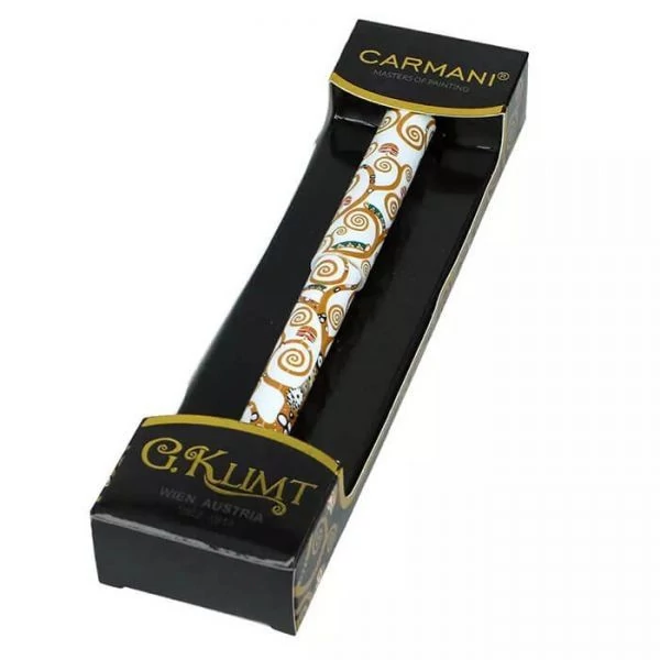 Kupakos golyóstoll Klimt Életfa képével díszítve, papír díszdobozban. Mutatós ajándék.