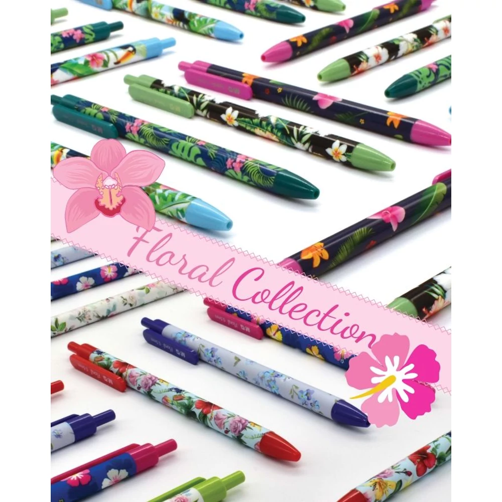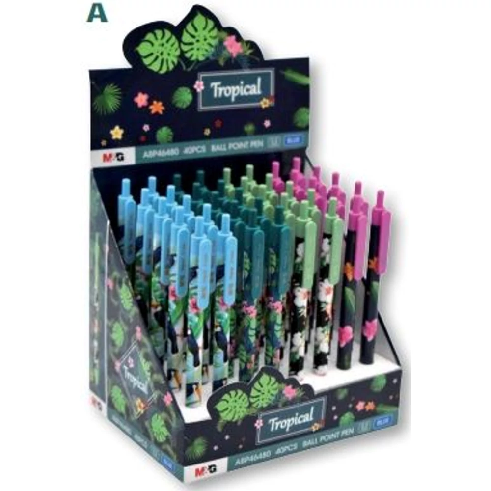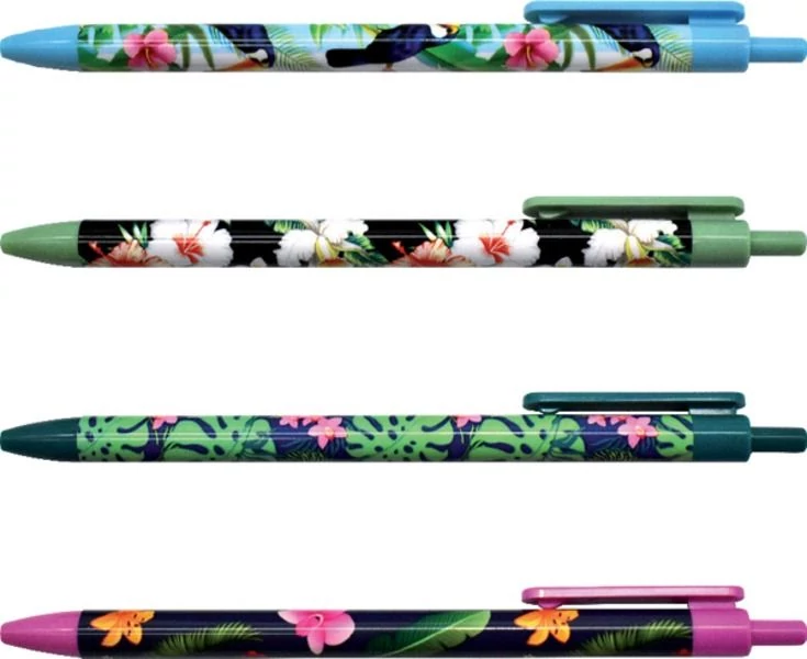 - Mintás műanyag tolltest. - Színes, műanyag klip. - Nyomógombos kivitel. 0,5 mm golyóátmérő. - Kék tinta.