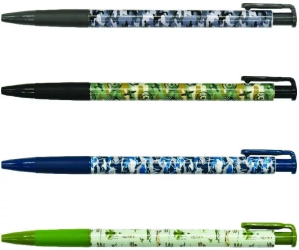 Katonás terep mintájú tolltest, gumírozott fogórész, nyomógombos szerkezet.