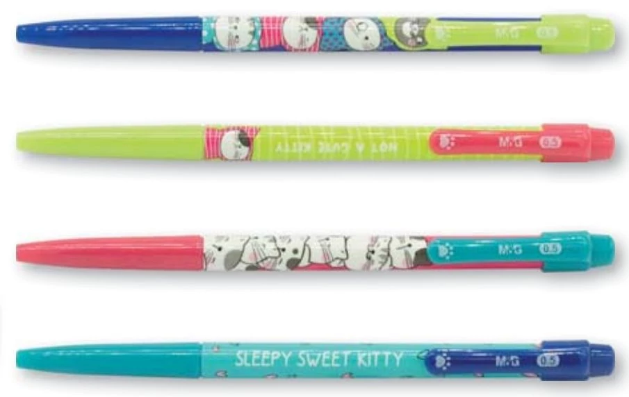 - műanyag, egyszínű tolltest  nyomógombos szerkezet  színes, műanyag, mintás klip