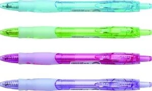 - Műanyag, csillámos, áttetsző tolltest, nyomógombos szerkezettel. Csúszásgátló fogórész, műanyag írócsúccsal.