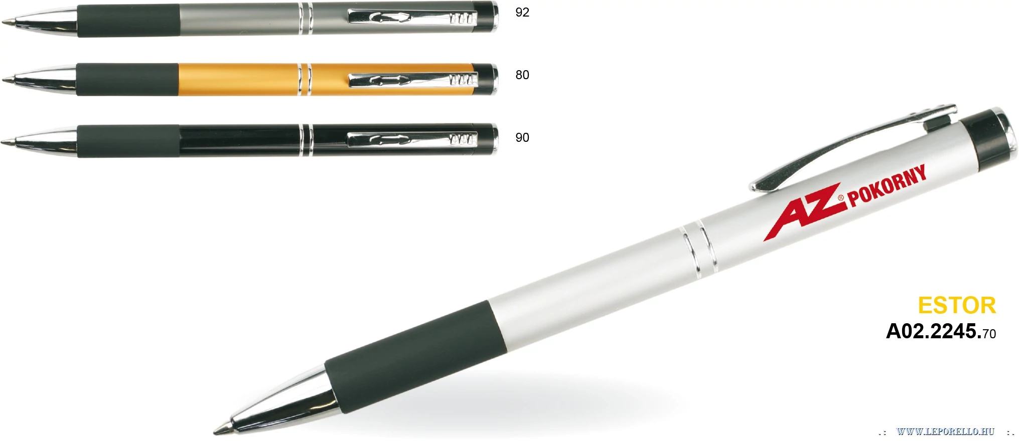 színek : A02. 2245. 90-fekete , A02. 2245. 80-narancssárga , A02. 2245. 70-ezüst , A02. 2245. 92-antracir - Alumínium golyóstoll vagy mechanikus ceruza gumírozott markolattal