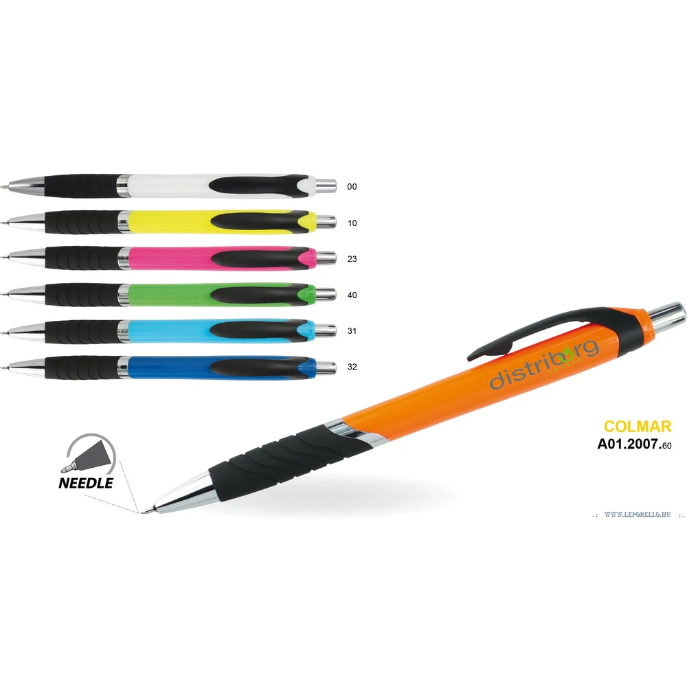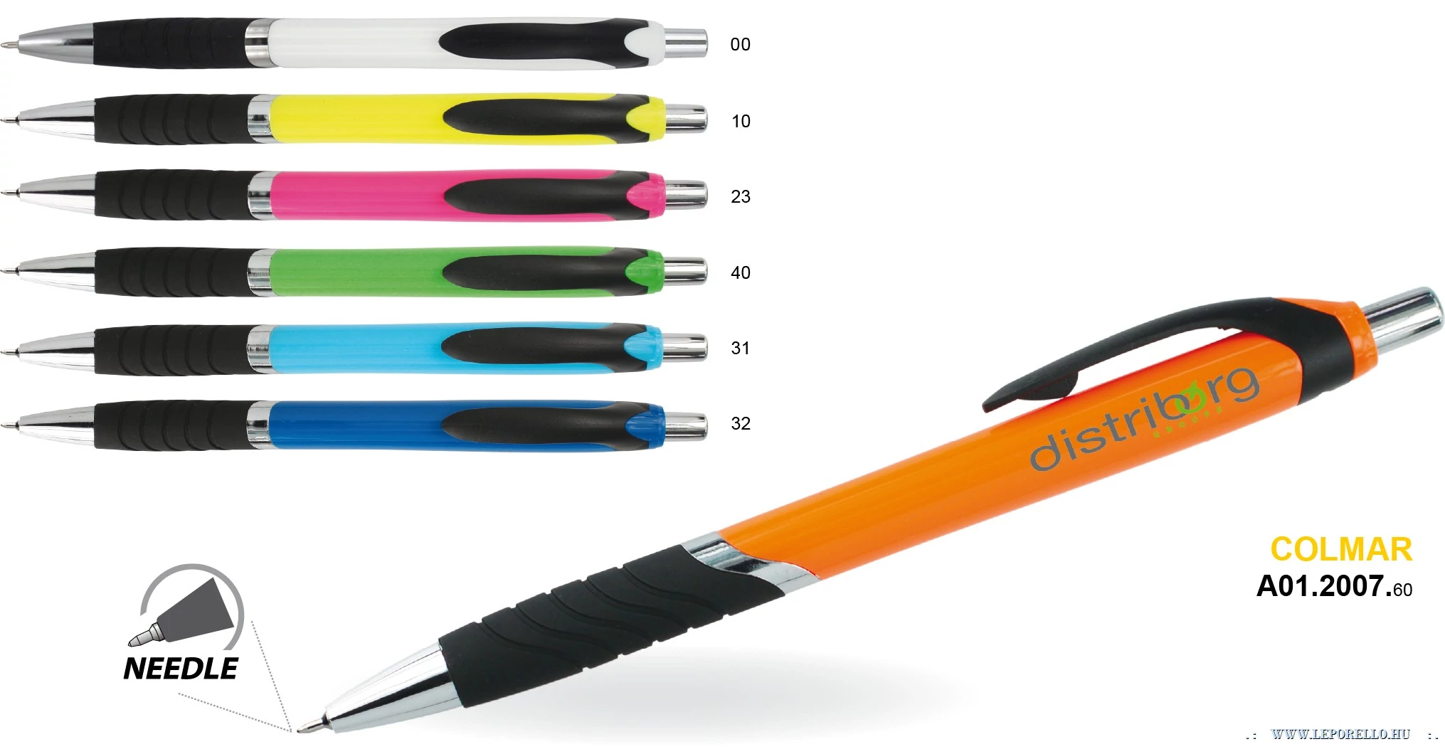 színek:A01. 2007. 60-narancs, A01. 2007. 00-fehér ,A01. 2007. 10-citrom ,A01. 2007. 23-rózsaszín ,A01. 2007. 40-zöld ,A01. 2007. 31-vkék ,A01. 2007. 32-skék - Műanyag golyóstoll gumírozott markolattal