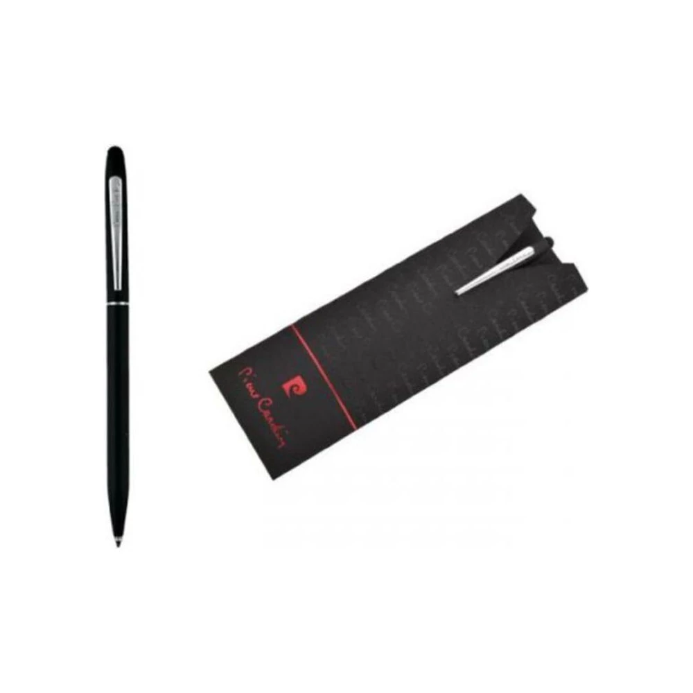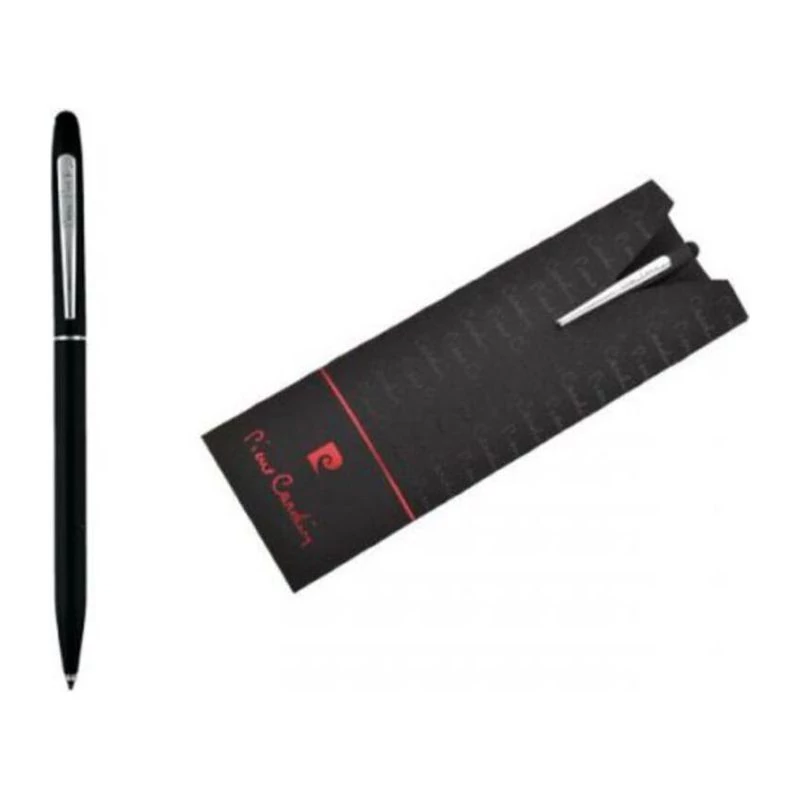 Elegáns Pierre Cardin forgócsavaros fém golyóstoll, fekete színben, ezüst tollcsipesszel, kék színű minőségi Schneider tollbetéttel (0,5mm). Pierre Cardin papírtokba csomagolva hitelességi bizonyítvánnyal szállítjuk.
