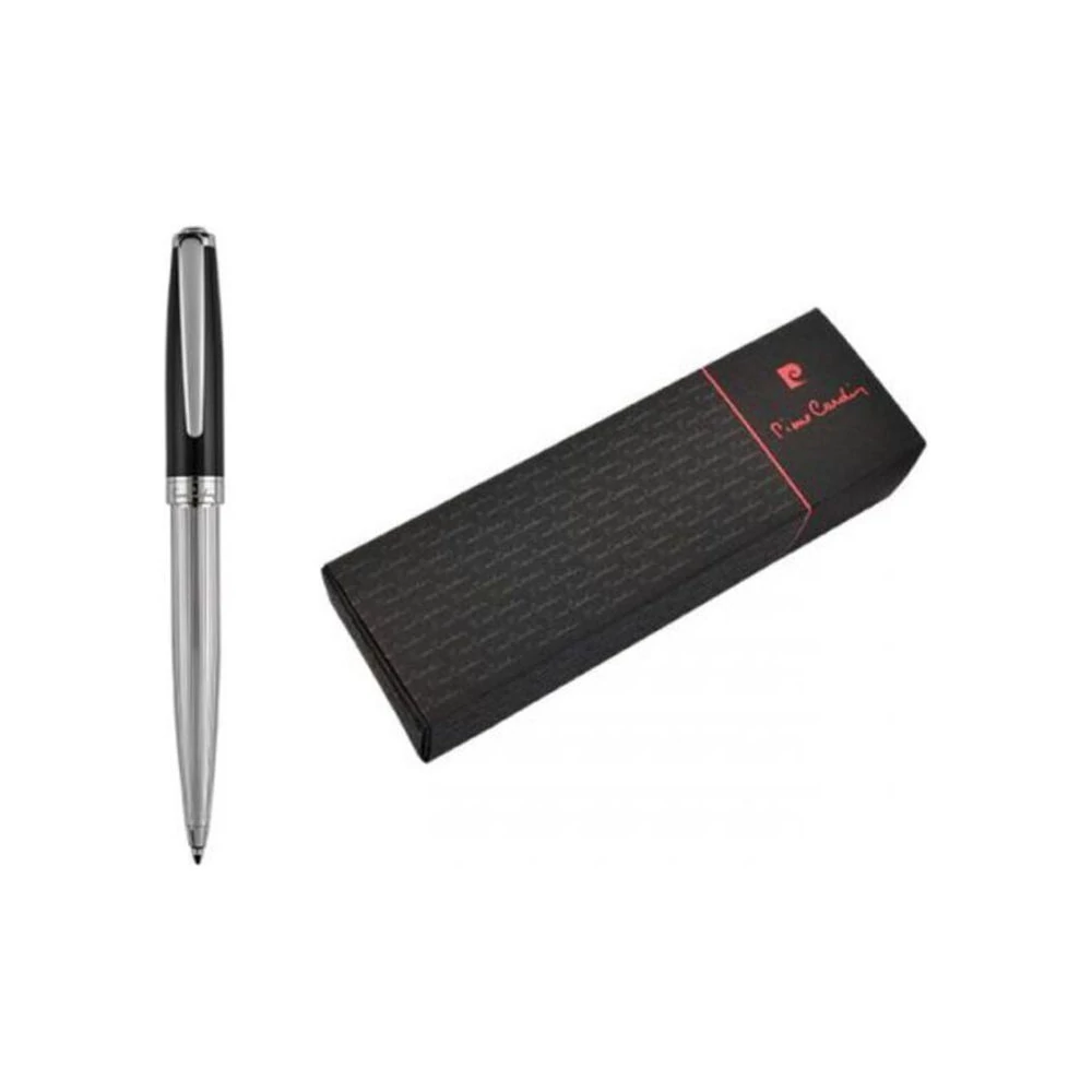 Pierre Cardin fém golyóstoll vaskos kivitelben, szép szürke és fekete kombinációban, finoman gravírozott tolltesttel. A golyóstoll kék színű minőségi tollbetéttel (0,5mm) ellátott. A díszdoboz fekete pótbetétet tartalmaz. Hitelességi bizonyítvánnyal.